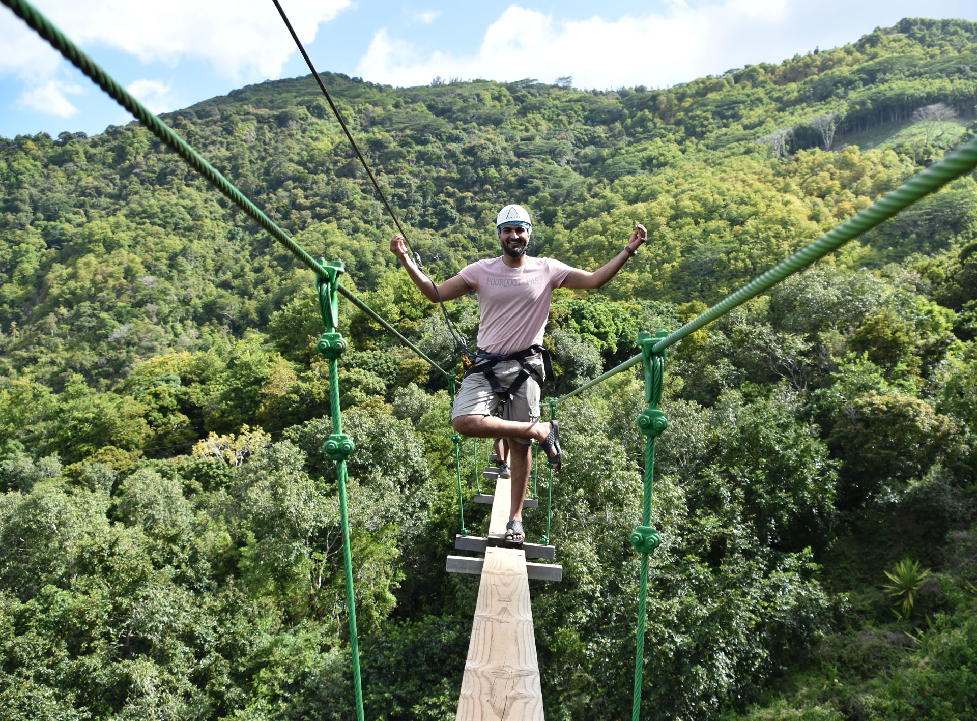 Lavilleon Adventure Park has 3 sensational and thrilling Ziplines which are located over a valley with trees of over 300+ years and a speed exceeding over 100+ km /h. Our Nepalese Bridge is also located over a valley where clients can admire the beauty of the domain and of ‘Baie du Cap’ all while walking along the suspended bridge.